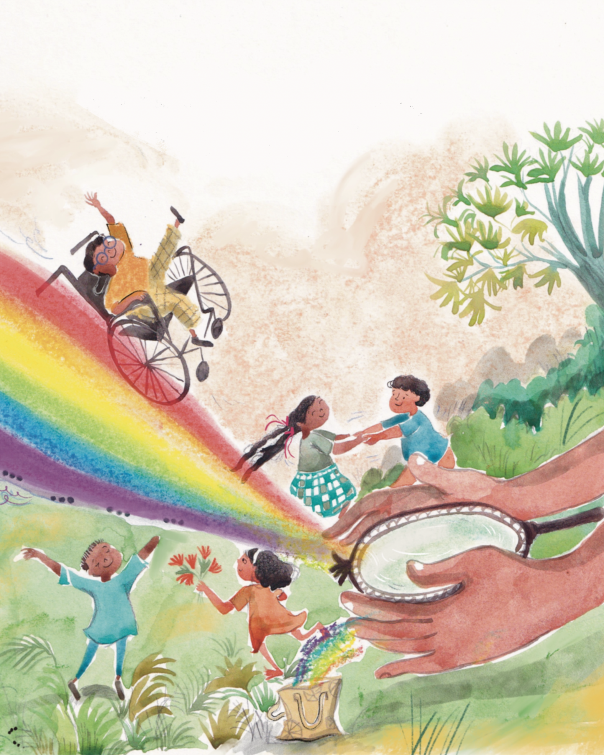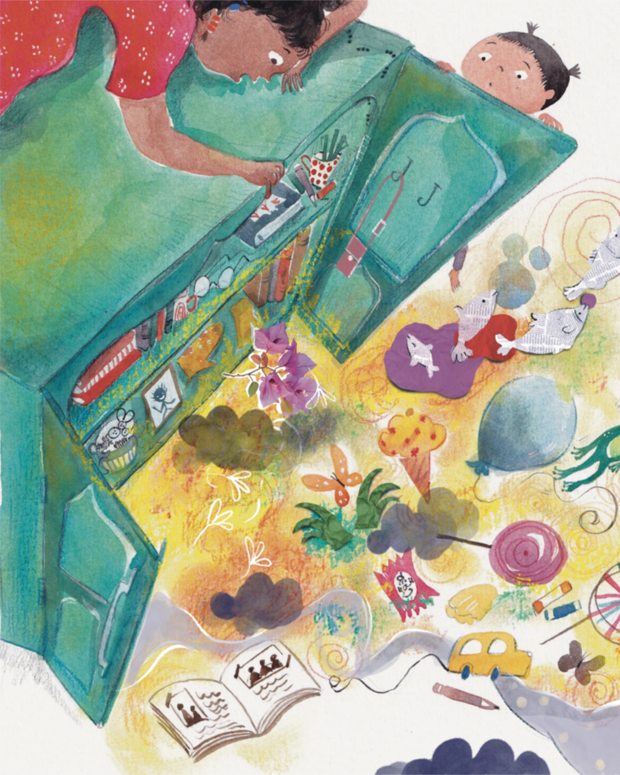 From her handbag come small, magical things,a glove, a light, a string even.Each one a gentle invitation to feel and just be.